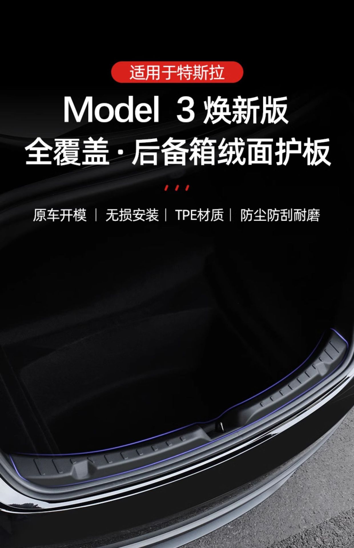 适用焕新版特斯拉Modely/3/YL后备箱护板尾门槛条护垫改装饰配件
